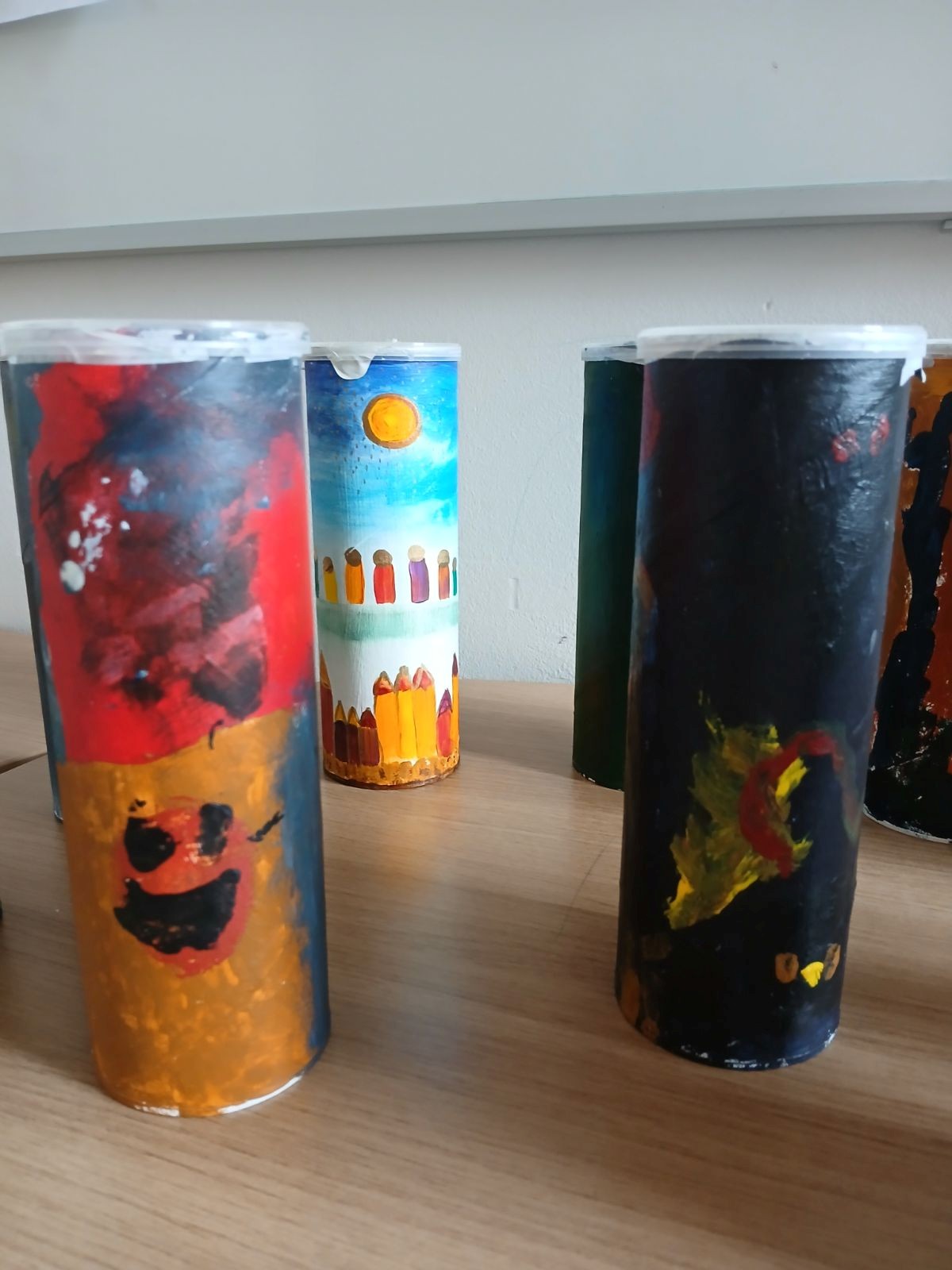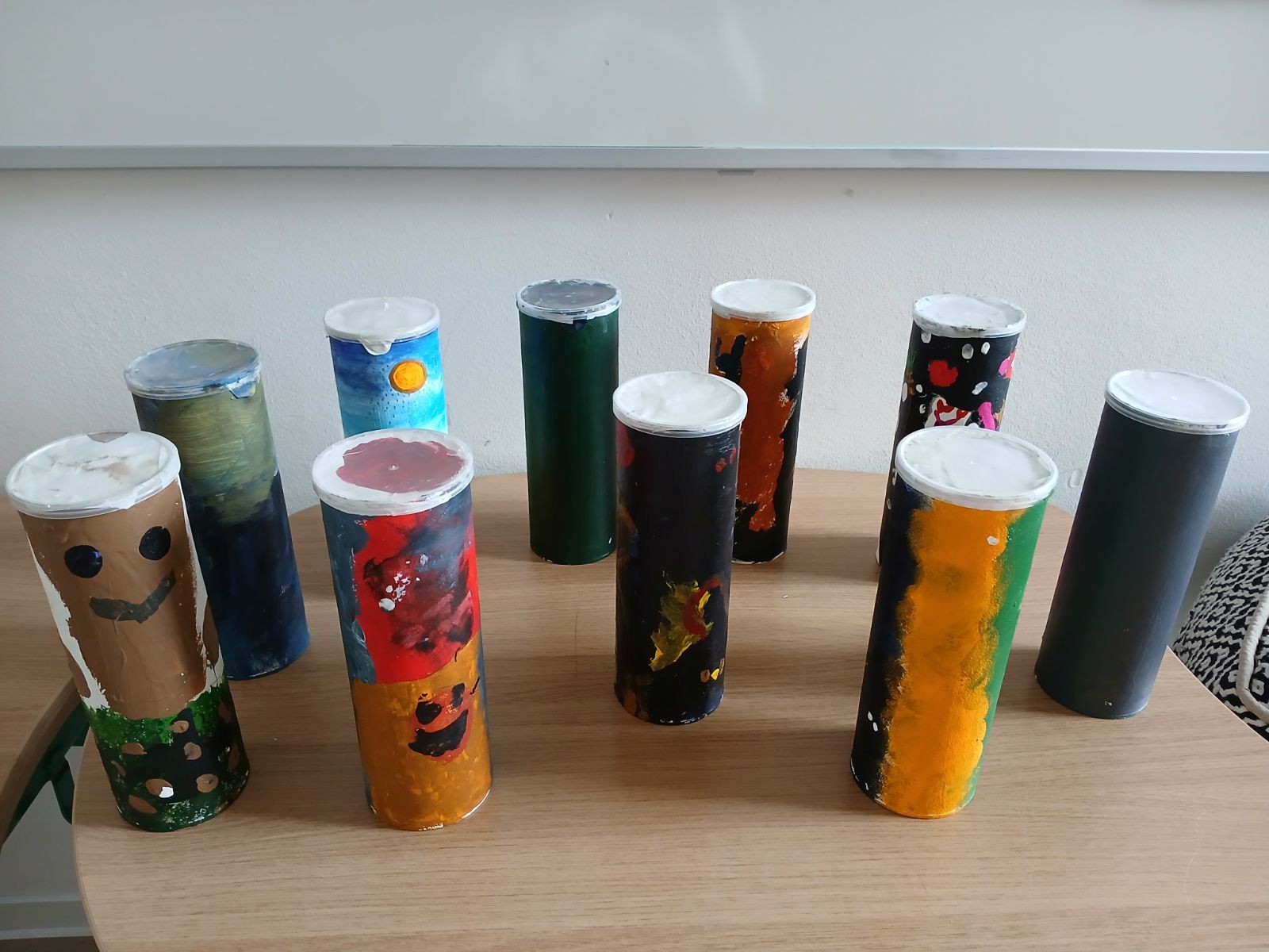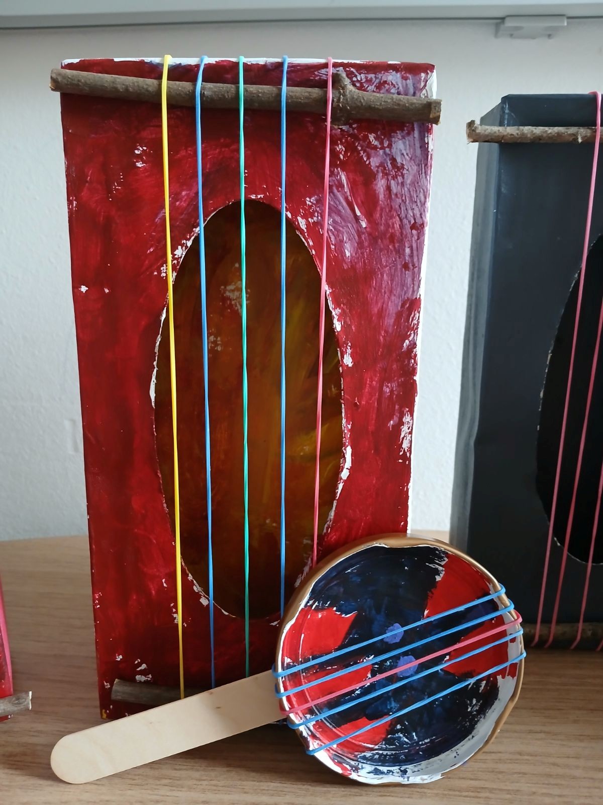 Unsere Klassengruppe der LUCHSE haben mit Frau Lurz aus Alltagsgegenständen an einem Projekttag Instrumente selbst hergestellt…..